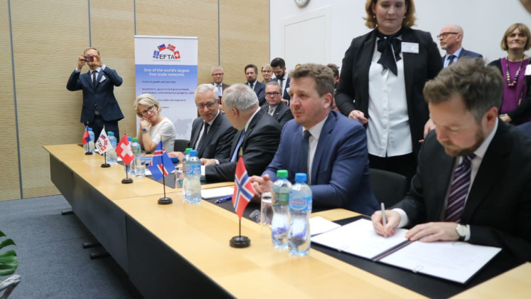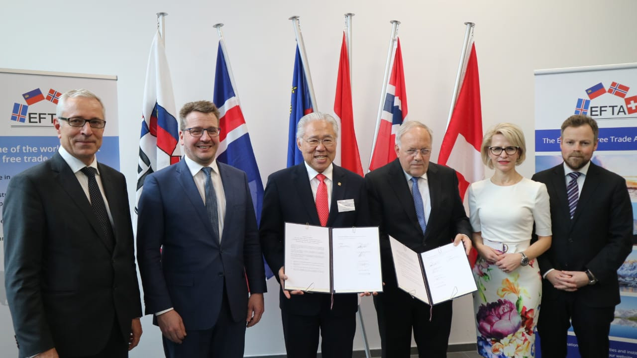 Representing the signatory countries were Indonesia’s Trade Minister Enggartiasto Lukita, Switzerland’s Federal Councillor and the Federal Department of Economic Affairs, Education and Research Head of the Swiss Confederation Johann N. Schneider-Ammann, Liechtenstein’s Foreign Affairs, Justice and Culture Minister Aurelia Frick, Norway’s State Secretary Daniel Bjarmann-Simonsen, and Icelandic Ambassador and Chief of Protocol Hannes Heimisson.