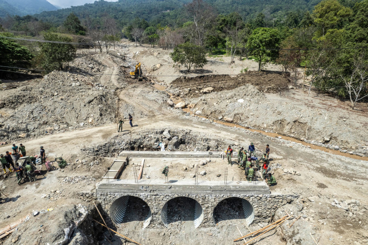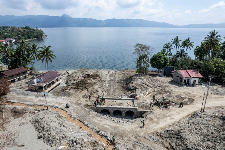 An aerial photo shows Indonesian Army soldiers continuing construction of the Aramco bridge on Feb. 20 on Jl. Padang Laweh Malalo, Malalo, Tanah Datar, West Sumatra. The Indonesian Army aims to complete the bridge, which connects several areas around Lake Singkarak, including the Singkarak Hydroelectric Power Plant that was damaged by flash floods in November 2025, by March 2026. (.ANTARA FOTO/.Wahdi Septiawan)Customary knowledge also influences settlement patterns. Homes in Malalo are generally built along an east–west orientation rather than north–south. Some researchers suggest this aligns with the direction of the Sumatra Fault near Lake Singkarak.