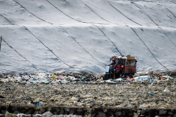 Endless waste crisis: A worker rides a garbage transport motorbike on April 14 at the Jatiwaringin landfill in Tangerang regency, Banten. The Environment Ministry has urged regional governments to immediately address open dumping practices at landfills and transition to a controlled landfill system, in which waste is covered with layers of soil periodically, with a deadline set for July 2026 to minimize environmental pollution and disaster risks. (Antara/Putra M. Akbar)