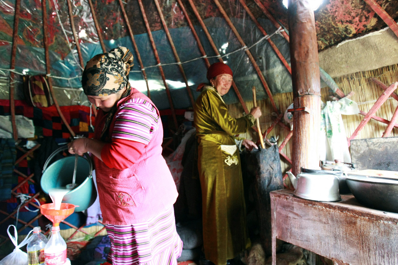 Through promotional films and festivals, Kyrgyzstan is encouraging tourists to experience the traditional nomadic Kyrgyz lifestyle by sleeping in a yurt in a lush mountain pasture close to the herds of horses which provide the milk.