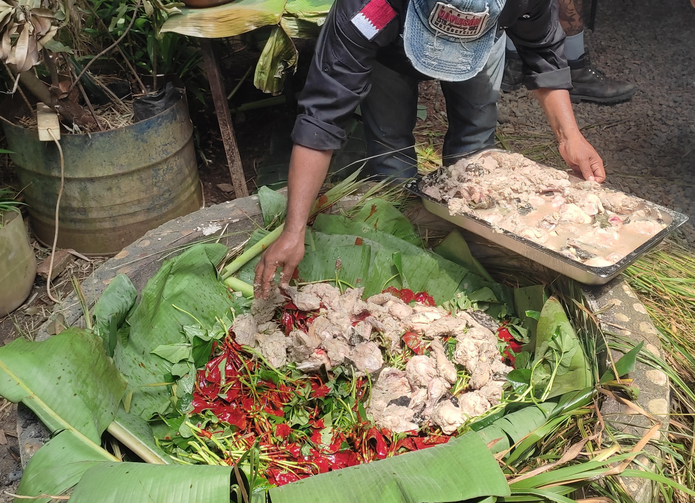 One pit followed the careful steps of a Maori hangi, a centuries-old cooking method from New Zealand. The other drew on bubigi, or masak bakar batu, a communal stone-cooking tradition rooted in Papuan life.
