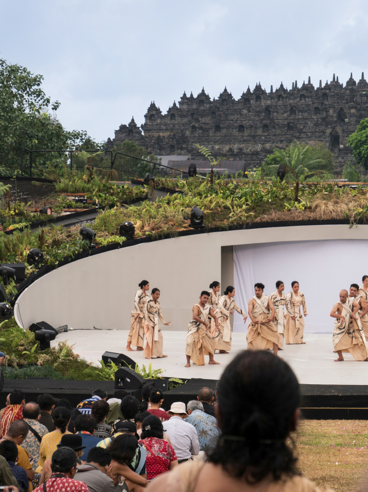 The studio’s flexibility and exploration of architectural typology are evident in its diverse work, ranging from the Spring/Summer 2026 fashion show set for Sapto Djojokartiko to a stage design for the Festival Indonesia Bertutur in Borobudur Temple in Central Java, where the absence of physical distance between stage and audience became a defining gesture.