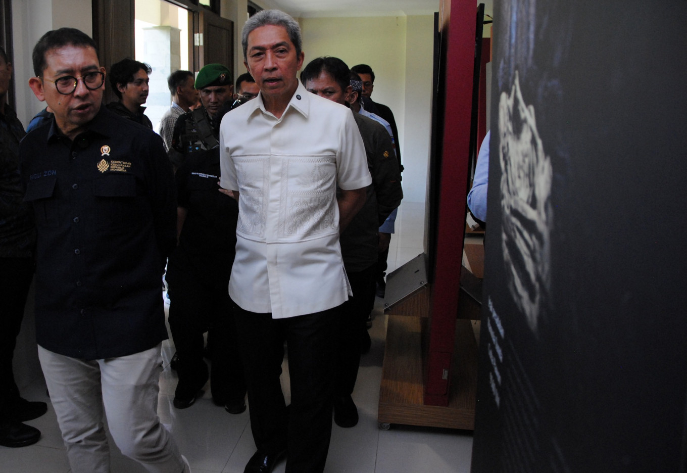 Culture Minister Fadli Zon (left) talks with Bogor Mayor Dedie A. Rachim (right) on Oct. 25 during a visit to Bumi Ageung Batutulis Museum in Bogor, West Java. Fadli visited the museum amid a plan to build a museum focused on telling the history of the ancient Sundanese kingdom of Pajajaran. (Antara/Arif Firmansyah)
