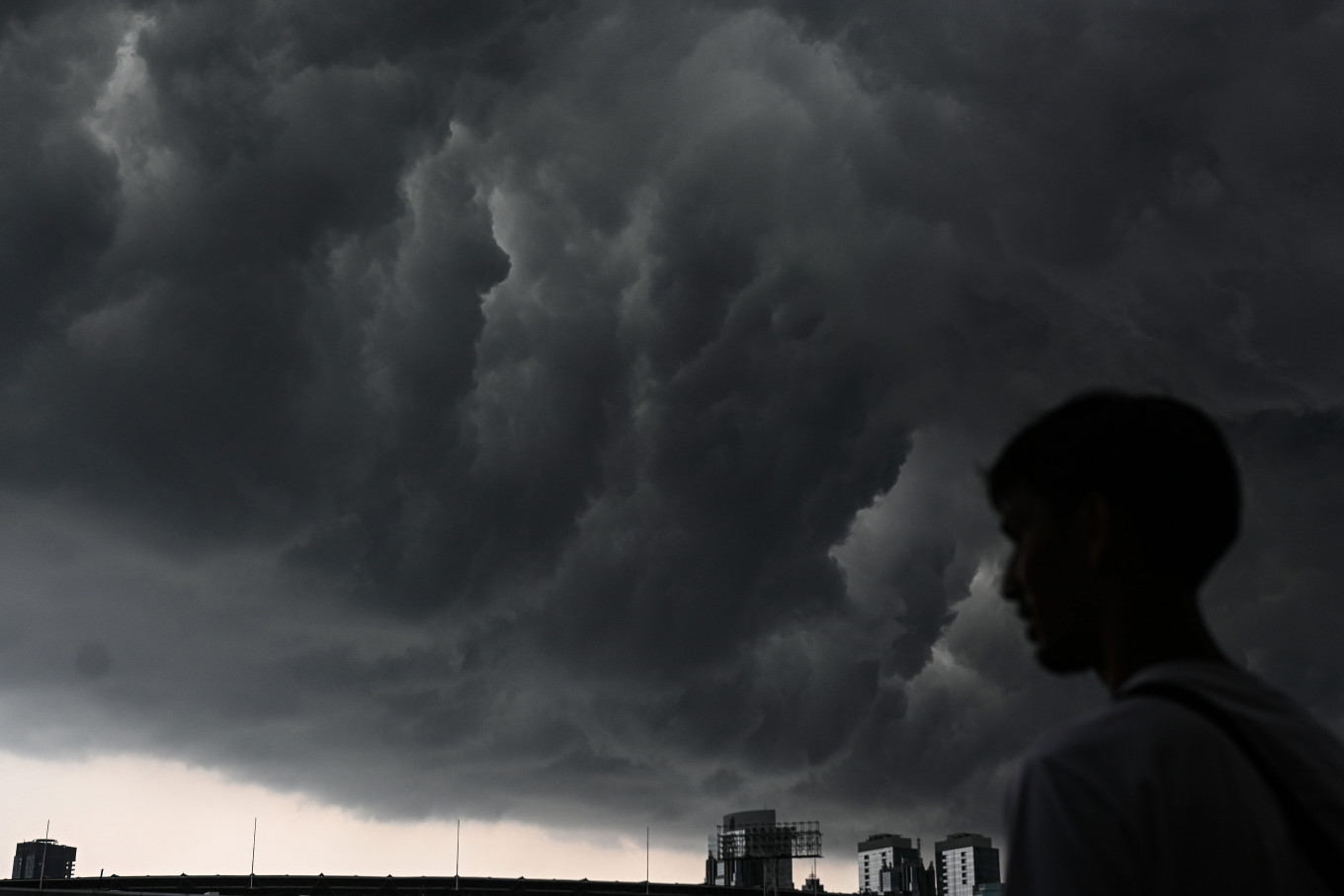 A resident observes thick clouds on Nov. 15 covering the Senayan area in Jakarta. The Meteorology, Climatology and Geophysics Agency (BMKG) asked the public to remain alert for potential extreme weather expected through Nov. 20, due to a combination of atmospheric phenomena that triggered significant rain cloud formation across Indonesia. (Antara/Sulthony Hasanuddin)