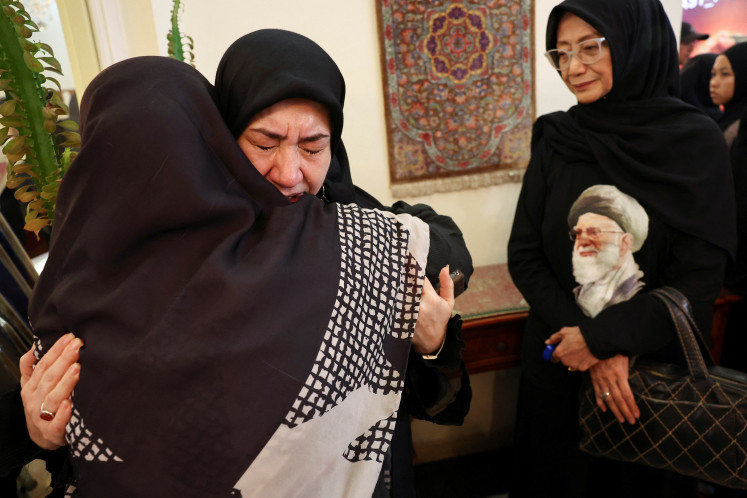 Two women embrace on March 5, 2026, during a prayer service for the late Iranian supreme leader Ayatollah Ali Khamenei, who was killed on March 1 in the joint United States-Israeli strikes on Tehran, at the Iranian ambassador's residence in Menteng, Central Jakarta. (Reuters/Willy Kurniawan)In his remarks, Iranian Ambassador Mohammad Boroujerdi recalled Khamenei’s leadership and condemned the joint US-Israeli strikes on Iran.