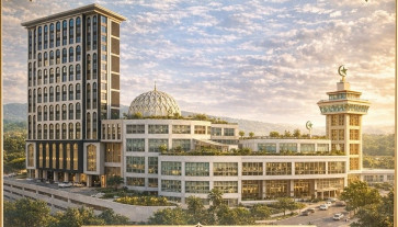 Sunlight illumines the Jabal Arafah Mosque and its integrated facility, including the highest building (left) of the Nagoya central business district in Batam city, Riau Islands province, in this artist's impression released by the mosque's Arafah Batam Foundation on March 21, 2026. (Courtesy of Asman Abnur/-)
