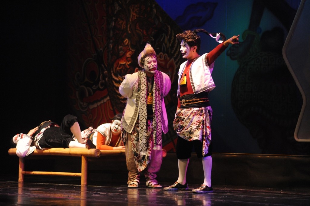 The Beauty and the Beast-like backdrop during Arjuna and Srikandi’s wedding and large, shiny coconut trees as the gates to heaven, are among the spectacular attributes audiences can expect to view from their seat during the show. The show is also not limited to the stage; as when Bagong tries to run from Balaupata and Cingkarabala, he can be seen running from one side of the stage, up to the seating area.