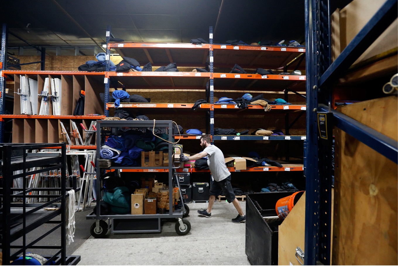 In this June 1, 2016 photo, a worker for MBS Equipment Co., a grip and lighting company, moves equipment in their warehouse at Second line Stages, in New Orleans. Louisiana’s once-booming film industry, branded as “Hollywood South”, has gone from darling to Hollywood castoff. The industry is off by as much as 90 percent due to changes to the state’s film tax incentive program that have scared off movie makers. (AP Photo/Gerald Herbert)