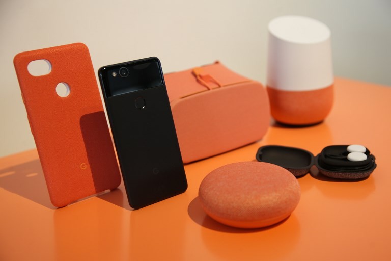 Google's new Home and Pixel products are seen at a product launch event at the SFJAZZ Center in San Francisco, California, in October 2017. Devices such as Amazon's Alexa-powered speakers, Google Home and Apple HomePod are increasingly delivering news flashes and summaries, and giving users the option to get more in-depth news, just by asking. (AFP/Elijah Nouvelage)