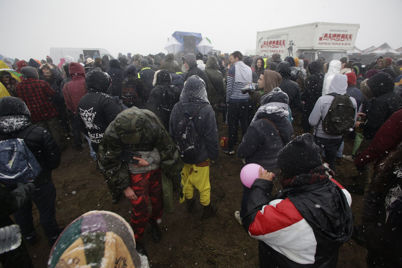 Around 30 people were treated for hypothermia at the scene and two were taken to hospital, local officials told AFP, with the several centimeters (inches) of snow turning the festival camping experience into an endurance test.