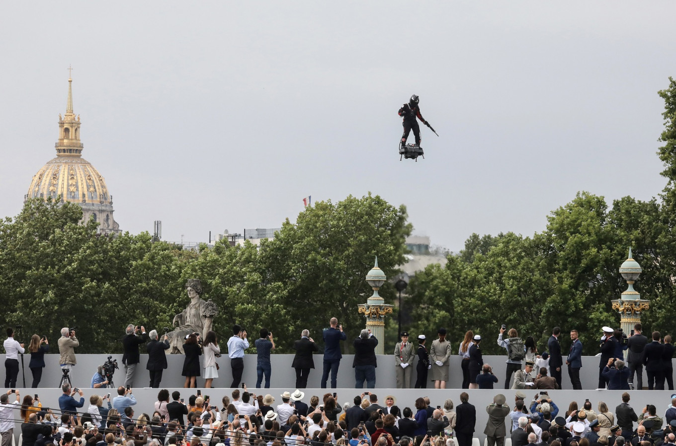 President Emmanuel Macron posted a video of Zapata's stunt at the July 14 parade, with the caption, "Proud of our army, modern and innovative".