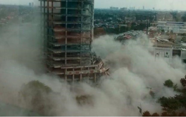 ome parts of an old skyscraper in Bintaro, South Tangerang, Banten, collapsed on Thursday afternoon causing clouds of dust in the surrounding area.