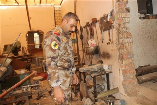 In this image taken by an Iraqi Counterterrorism Service photographer on June 19, 2016, an officer stands inside an Islamic State militant weapons facility in Fallujah, Iraq after forces re-took the city center after two years of IS control. Thousands of civilians are fleeing Fallujah after the city was declared liberated from the Islamic State group, the United Nations said, while an Iraqi commander reported fierce clashes as elite counter-terrorism forces pushed to clear out the remaining militants. (Iraq Counterterrorism Service via AP/-)