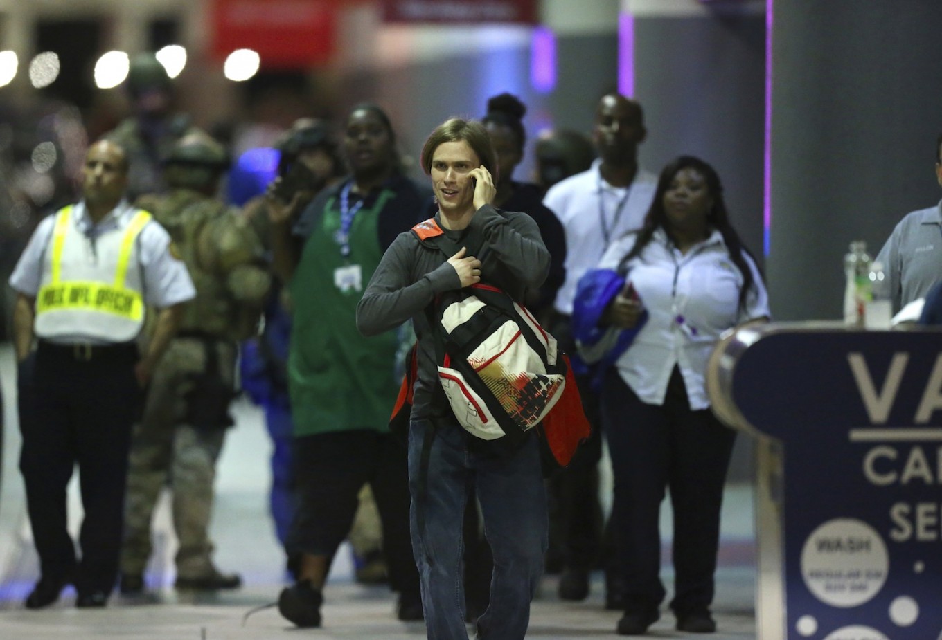 About 6:30 p.m., SWAT team members began escorting the people who had been standing in the check-in area of Terminal 2 to a parking garage.
