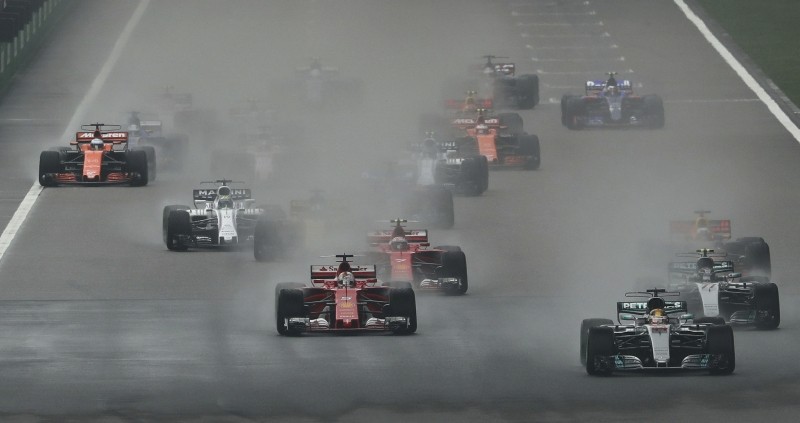 The drivers had barely left the starting grid when Williams' Lance Stroll bumped against Sergio Perez of Force India and spun off the track into a bed of gravel. A short time later later, on the fourth lap, Antonio Giovinazzi hit a wet patch and slammed into the wall, severely damaging his Sauber car and bringing the race to a halt again.