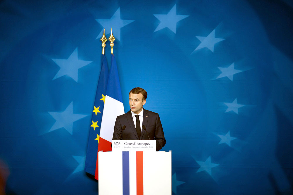 Emboldened: French President Emmanuel Macron speaks at a news conference at a European Union leaders summit in Brussels, Belgium at the end of last year. Macron on Monday ordered stringent restrictions on people's movement to slow the spread of the coronavirus, and said the army would be drafted in to help move the sick to hospitals.