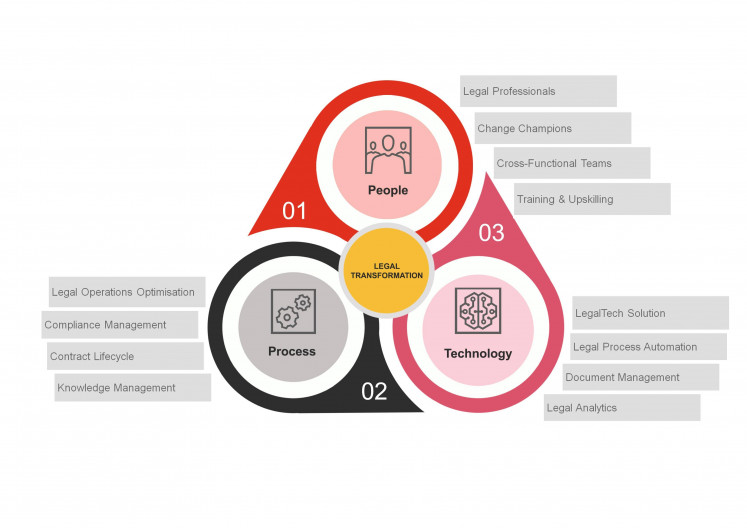 Reflecting on PwC’s NewLaw team’s successful legal innovation scenarios, a clear path for building future-ready legal departments involves a three-pillar legal transformation approach centered on people, process and technology. Empowering people involves upskilling legal professionals to utilise new tools and technologies effectively, fostering a culture of innovation and adaptability. Process transformation requires a thorough review and optimisation of workflows to eliminate ‘pain points’ and enhance productivity.