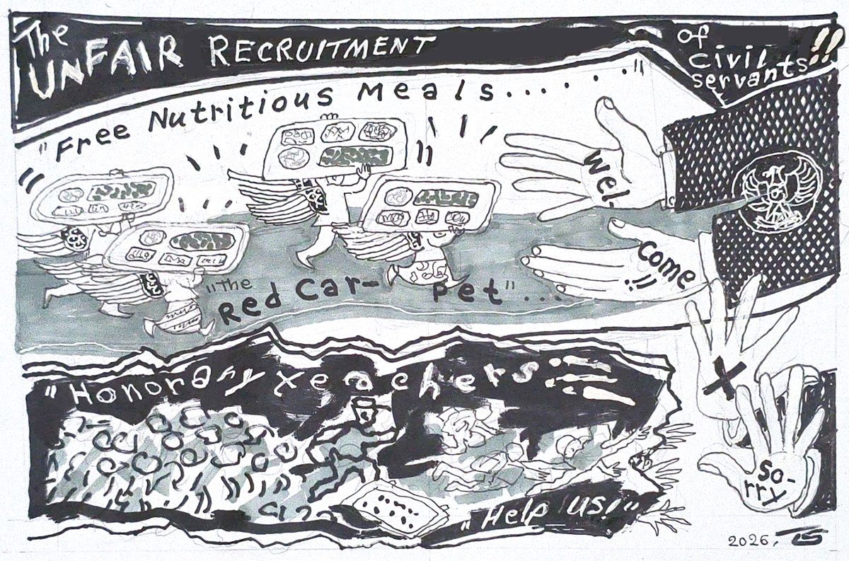 After shifting a massive portion of the education budget to the free meals program, the government is now recruiting free-meal staff as PPPK. This policy openly discriminates against honorary teachers who have waited years, if not decades, for such coveted status.