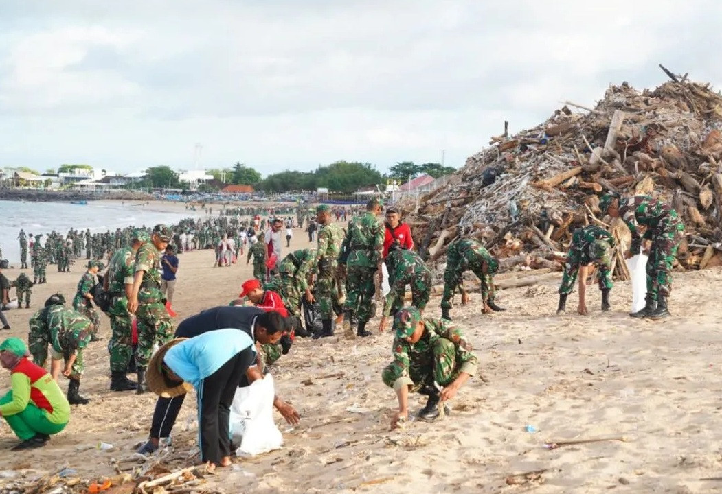n a bright morning at Bali's famous Kuta Beach, rows of schoolchildren stood shoulder-to-shoulder with Indonesian Military (TNI) soldiers. Together, they collected plastic bottles, driftwood and organic debris scattered across the shoreline while tourists watched quietly from the sidelines.