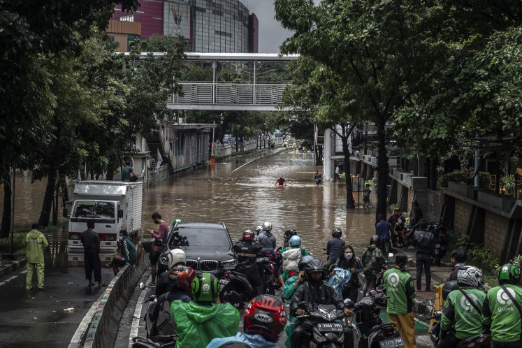 The Jakarta Police’s Traffic Management Center reported that several arterial roads were inundated by floodwater, including Jl. Kapten Tendean, Jl. Kemang Raya and Jl. Jenderal Sudirman. Kompas.com reported that several parts of Jl. Sudirman were still inundated as of Saturday evening.