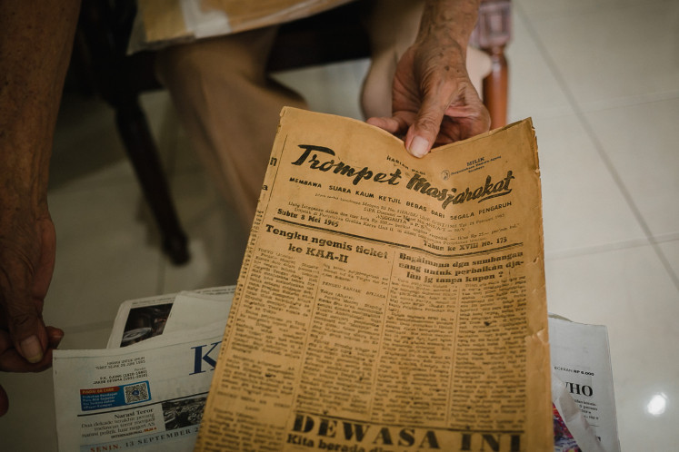 Now 85, Oei Hiem Hwie, was sitting on an old sofa on his veranda, pasting newspaper clippings into a folder when The Jakarta Post visited him at home on Sept. 13. The former political prisoner during the New Order era, who goes by Hwie, now runs a library called Medayu Agung in southeastern Surabaya.