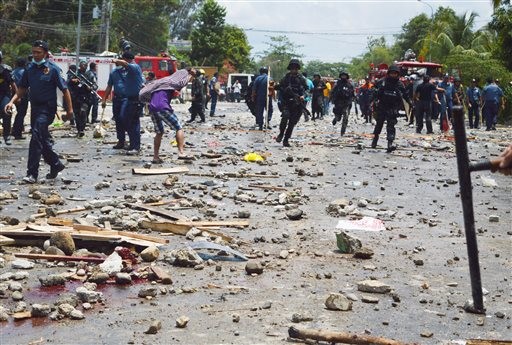 Mendoza said two protesters were killed and a journalist at the site counted 13 injured demonstrators. Provincial police chief Alexander Tagum said at least 23 police officers also were hurt.