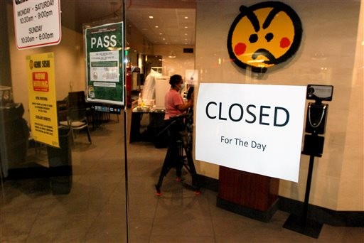 Employees clean the Genki Sushi conveyor belt restaurant chain Tuesday, Aug. 16, 2016, in Aiea, Hawaii. The Hawaii State Department of Health Sanitation said Tuesday that Genki Sushi is being ordered to close its 10 restaurants on Oahu and one on Kauai after state authorities identified its raw scallops as the probable source of a hepatitis A outbreak. The disease can cause fever, loss of appetite and other symptoms. (AP Photo/Caleb Jones)