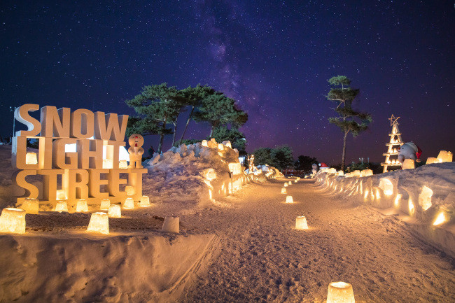 Snowy Land is a 46,000-square-meter winter theme park located atop Maebongsan in Gangwon Province. It is designed to look like a fairy-tale village where imaginary snow creatures of “Snowy” dwell.
