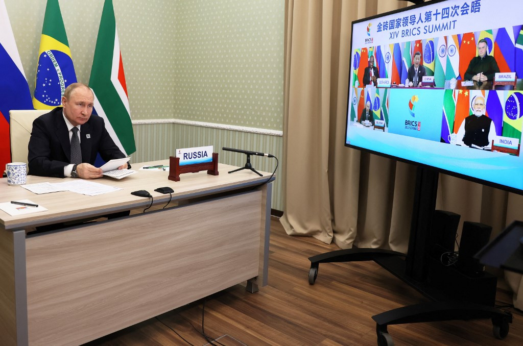 The Russian President on Thursday called on BRICS leaders to work together to offset "selfish actions" from the West and push for a "truly multipolar system of inter-government relations".