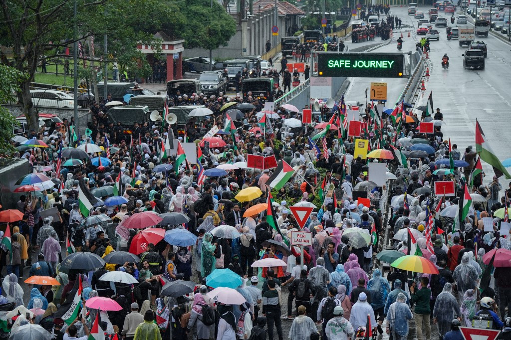 About 15,000 people marched in Barcelona in Spain, where the flotilla began its voyage, chanting slogans including "Gaza, you are not alone", "Boycott Israel" and "Freedom for Palestine".